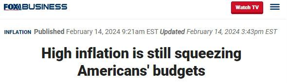 中國日報網(wǎng)2月19日電 綜合美媒報道,1月份美國批發(fā)價格跳漲,表明美聯(lián)儲與通貨膨脹的斗爭或尚未結(jié)束,很可能迫使它推遲降息。多位商界人士也表示,美國的通脹形勢比許多投資者預(yù)期的更具粘性。與此同時,通脹對普通美國人的現(xiàn)實負面影響一直在持續(xù)。