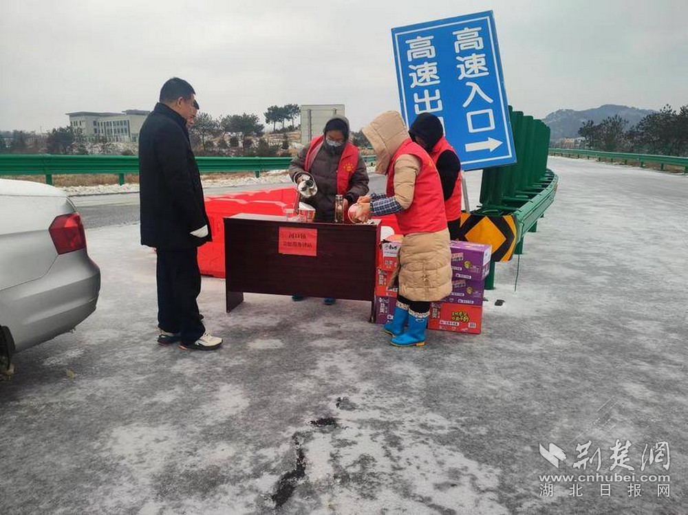 開發(fā)區(qū)、城關(guān)、芳畈、河口等鄉(xiāng)鎮(zhèn)區(qū)迅速在轄區(qū)內(nèi)高速出口和服務(wù)區(qū)設(shè)置志愿服務(wù)驛站,為滯留人員提供服務(wù),用愛心融化冰雪。