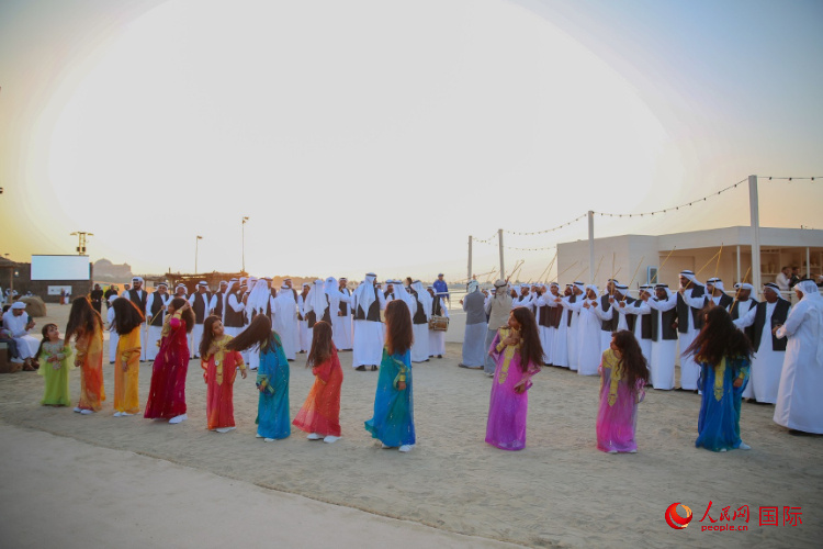 人民網(wǎng)阿布扎比2月24日電 (記者任皓宇、實(shí)習(xí)生滕婧含)23日傍晚,位于阿聯(lián)酋首都阿布扎比海濱大道的阿爾巴哈爾海灘人來人往、熱鬧非凡。身著傳統(tǒng)服飾的演藝人員一路載歌載舞,穿梭在海濱村落中,時(shí)而在漁村港口登船望遠(yuǎn),時(shí)而在香料、魚獲等攤位駐足交流,帶領(lǐng)游客沉浸式體驗(yàn)早期當(dāng)?shù)匕傩丈顖鼍?。?dāng)日,為期十天的第三屆阿布扎比海洋遺產(chǎn)節(jié)開幕,吸引眾多當(dāng)?shù)鼐用窈陀慰颓皝眢w驗(yàn)傳統(tǒng)民俗、領(lǐng)略海洋文化。