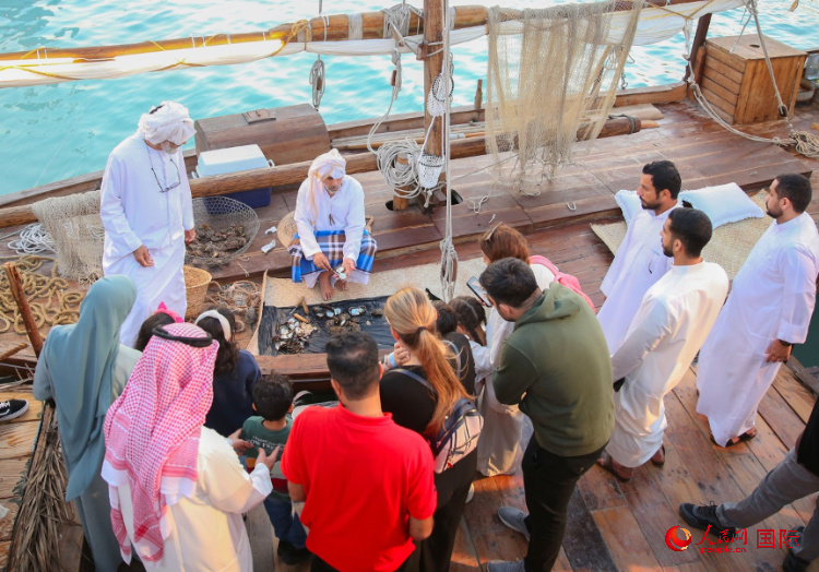 游客了解采珠工作。人民網(wǎng) 塔里克·易卜拉欣攝