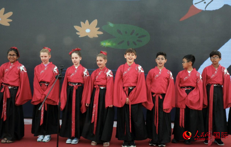 來(lái)自世界各地的小朋友一同誦讀中國(guó)古詩(shī)。人民網(wǎng) 滕婧含攝