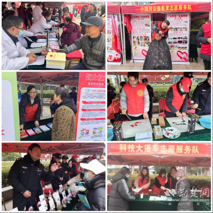活動(dòng)現(xiàn)場(chǎng),熱鬧非凡,21支志愿服務(wù)隊(duì)伍、500多名志愿者以“公益集市”的形式為群眾提供各類志愿服務(wù)?!敖】禌樗敝驹阜?wù)隊(duì)、“小四川”公益剪發(fā)志愿服務(wù)隊(duì)、“翰墨文心”志愿服務(wù)隊(duì),現(xiàn)場(chǎng)為群眾義診、義剪、送畫(huà);巾幗志愿服務(wù)隊(duì)、“北極星”志愿服務(wù)隊(duì)、“德安法治”志愿服務(wù)隊(duì)、“科技大篷車(chē)”志愿服務(wù)隊(duì)等隊(duì)伍,為群眾送去女性健康知識(shí)、法律法規(guī)、禁毒知識(shí)、科普知識(shí)等,得到市民一致好評(píng)。