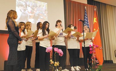 艾奧瓦州馬斯卡廷中學(xué)的學(xué)生們演唱歌曲《情緣留住永恒的記憶》。本報記者 李志偉攝