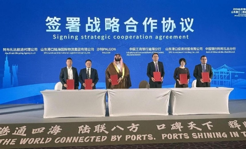 當(dāng)天活動(dòng)上,山東港口集團(tuán)多家機(jī)構(gòu)進(jìn)行了業(yè)務(wù)推介。來(lái)自中國(guó)、阿聯(lián)酋、沙特等國(guó)的企業(yè)簽署了戰(zhàn)略合作協(xié)議。