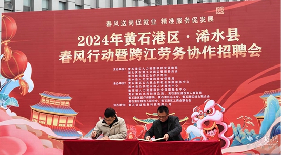 在活動(dòng)中,兩地人社部門(mén)相關(guān)負(fù)責(zé)人現(xiàn)場(chǎng)簽訂勞務(wù)合作協(xié)議,雙方將充分發(fā)揮各自?xún)?yōu)勢(shì),共同就招聘信息發(fā)布、勞動(dòng)力輸送、培訓(xùn)資源共享、校企合作、勞務(wù)糾紛維權(quán)、穩(wěn)崗監(jiān)測(cè)等方面進(jìn)行合作雙贏,共同推動(dòng)實(shí)現(xiàn)浠水、黃石港區(qū)兩地的優(yōu)勢(shì)互補(bǔ)、資源共享、互惠共贏、協(xié)同發(fā)展。