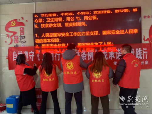 3月1日上午,孝南區(qū)機(jī)關(guān)事務(wù)服務(wù)中心在機(jī)關(guān)大院舉行“志愿孝南 情滿澴川”《條例》宣傳簽名活動(dòng),院內(nèi)22家單位的158名干部職工簽名承諾。