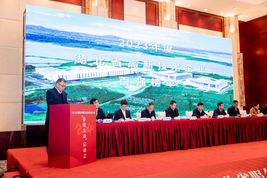 啟動(dòng)會(huì)上,湖北省科技信息研究院黨委書記肖松發(fā)布了《2023年湖北省高新技術(shù)企業(yè)發(fā)展報(bào)告》暨《2023 年度湖北省高新技術(shù)企業(yè)百?gòu)?qiáng)名單》,同時(shí)為百?gòu)?qiáng)高新技術(shù)企業(yè)代表進(jìn)行了授牌。