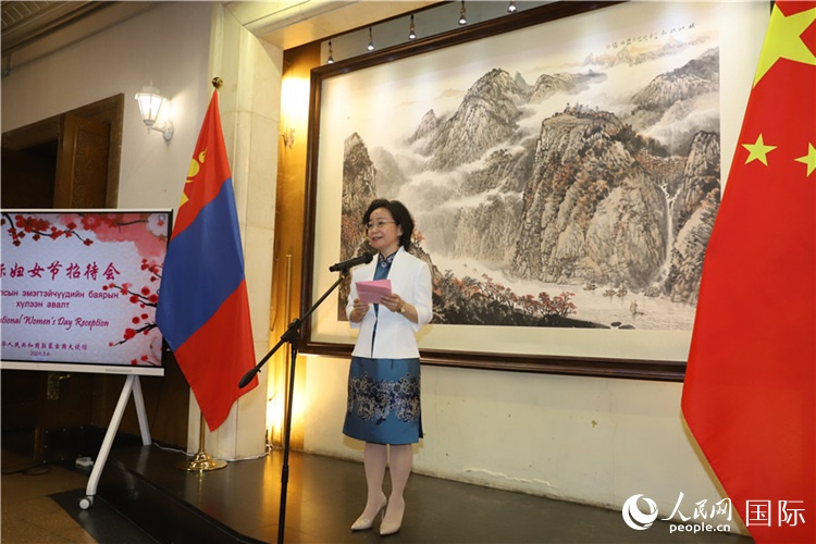 中國駐蒙古國大使沈敏娟邀請來賓觀看中國婦女脫貧攻堅記錄片,介紹了正在舉行的中國“兩會”,表示新中國成立75年來,婦女享有越來越高的社會地位?!皨D女能頂半邊天”,中國婦女將繼續(xù)為中國式現(xiàn)代化做出重要貢獻。
