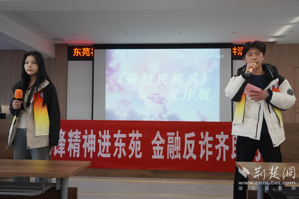 9時整,由湖北工程學院宣講隊帶來的《最炫民族風——反詐版》節(jié)目在激昂的旋律中開始了,為活動拉開序幕。節(jié)目結束之后,志愿者們還帶領居民們學習了《防電詐小口訣》,通過播放提前準備好的反詐PPT,展示經(jīng)典詐騙案例與新型詐騙案例,披露詐騙常用話術,傳授應對詐騙的知識,幫助社區(qū)居民筑牢反詐“防護網(wǎng)”,守好“錢袋子”。