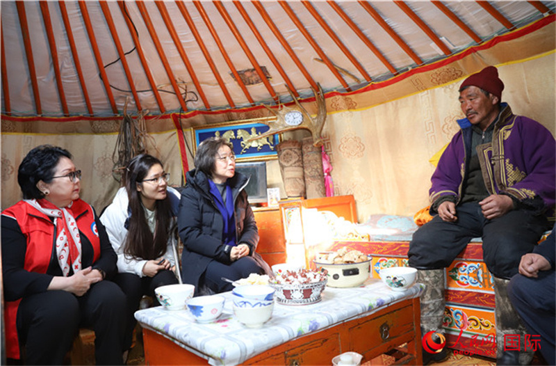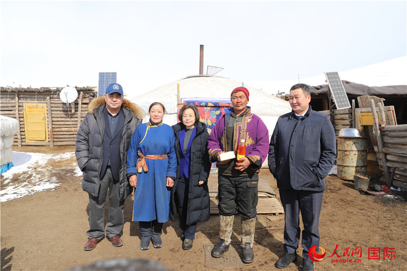 3月18日,沈敏娟走訪中央省額爾登縣牧民恩赫巴雅爾家。人民網記者 霍文攝
