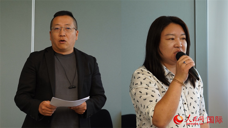 前協(xié)會(huì)專職秘書賀翔鵬(左)和新任專職秘書李琳(右)分別就各自工作進(jìn)行總結(jié)和介紹。人民網(wǎng) 劉暢攝