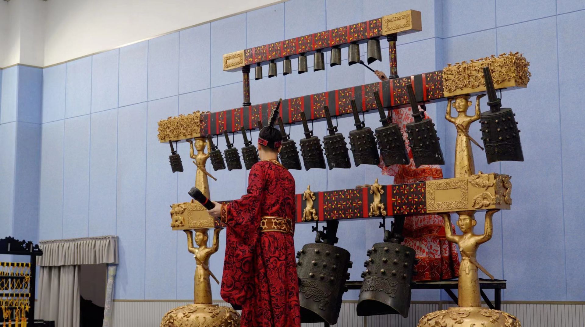 活動(dòng)在省歌劇舞劇院編鐘、編磬演奏的《夜泊》、《流水》、《楚調(diào)》中拉開帷幕,編鐘合奏古韻悠長(zhǎng),耐人尋味;編磬音樂立意高遠(yuǎn),旋律優(yōu)美,讓人感受到中國(guó)音樂文化的博大精深。