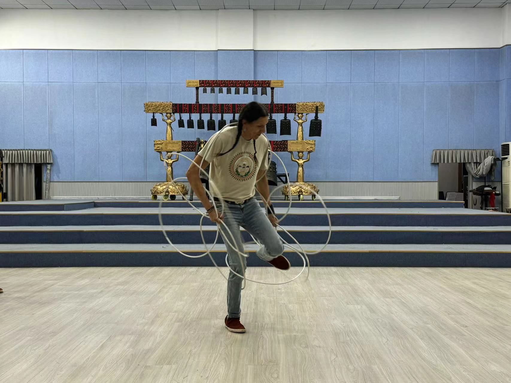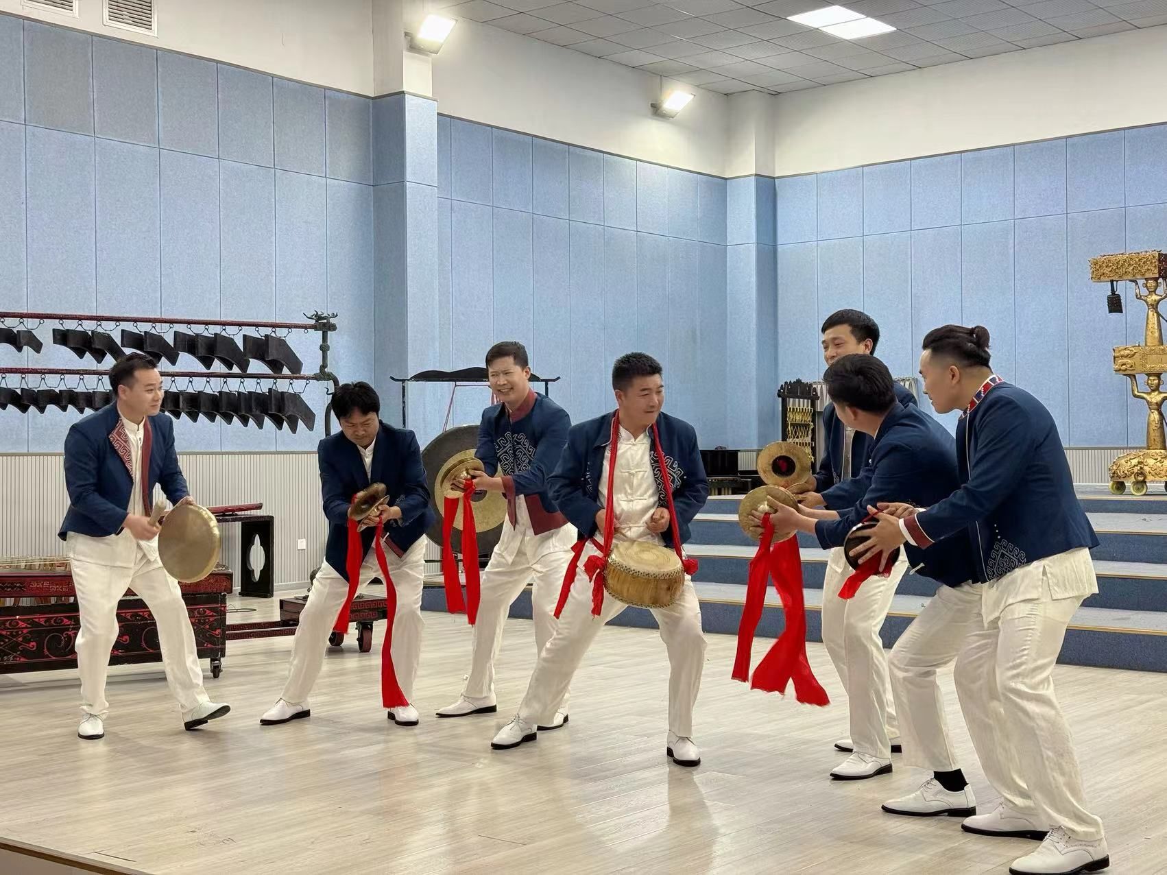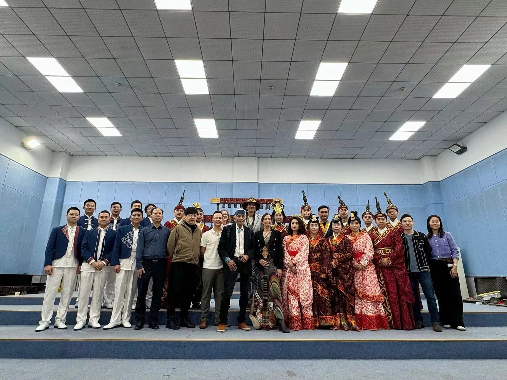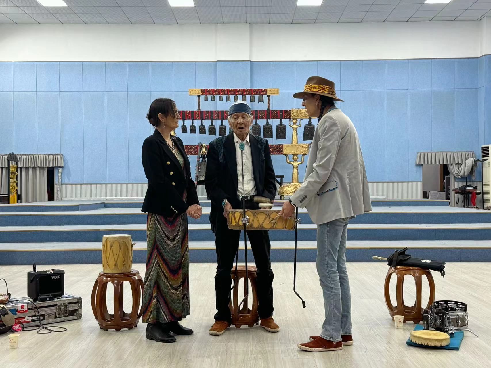活動(dòng)最后,Sihasin樂隊(duì)不僅帶來了極具迪內(nèi)納瓦霍特色的歌舞表演,還邀請(qǐng)現(xiàn)場(chǎng)所有演員上臺(tái)進(jìn)行即興創(chuàng)作。大家圍成一個(gè)圓,悠揚(yáng)的琴聲與貝斯聲完美融合,歌聲此起彼伏,中美音樂文化的交融將現(xiàn)場(chǎng)的氣氛推向了高潮。