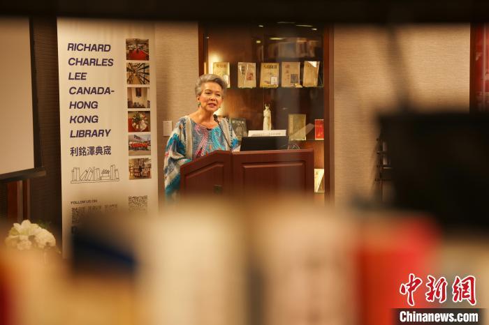 當(dāng)?shù)貢r(shí)間3月26日,加拿大頂尖高等學(xué)府多倫多大學(xué)內(nèi)專(zhuān)門(mén)收藏香港相關(guān)資料文獻(xiàn)的圖書(shū)館——利銘澤典宬,舉行建館15周年慶祝活動(dòng)。圖為利銘澤之女、曾是加拿大首位亞裔參議員的利德蕙致辭?!≈行律缬浾?余瑞冬 攝