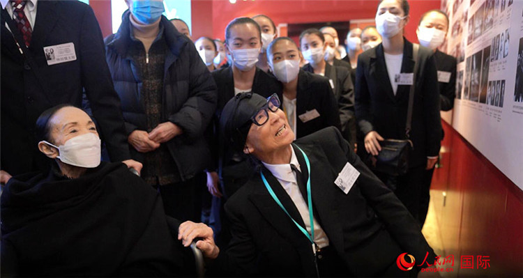 松山芭蕾舞團總代表清水哲太郎、團長森下洋子(前二)率青年代表團一行在中央芭蕾舞團參觀。人民網記者 袁蒙攝