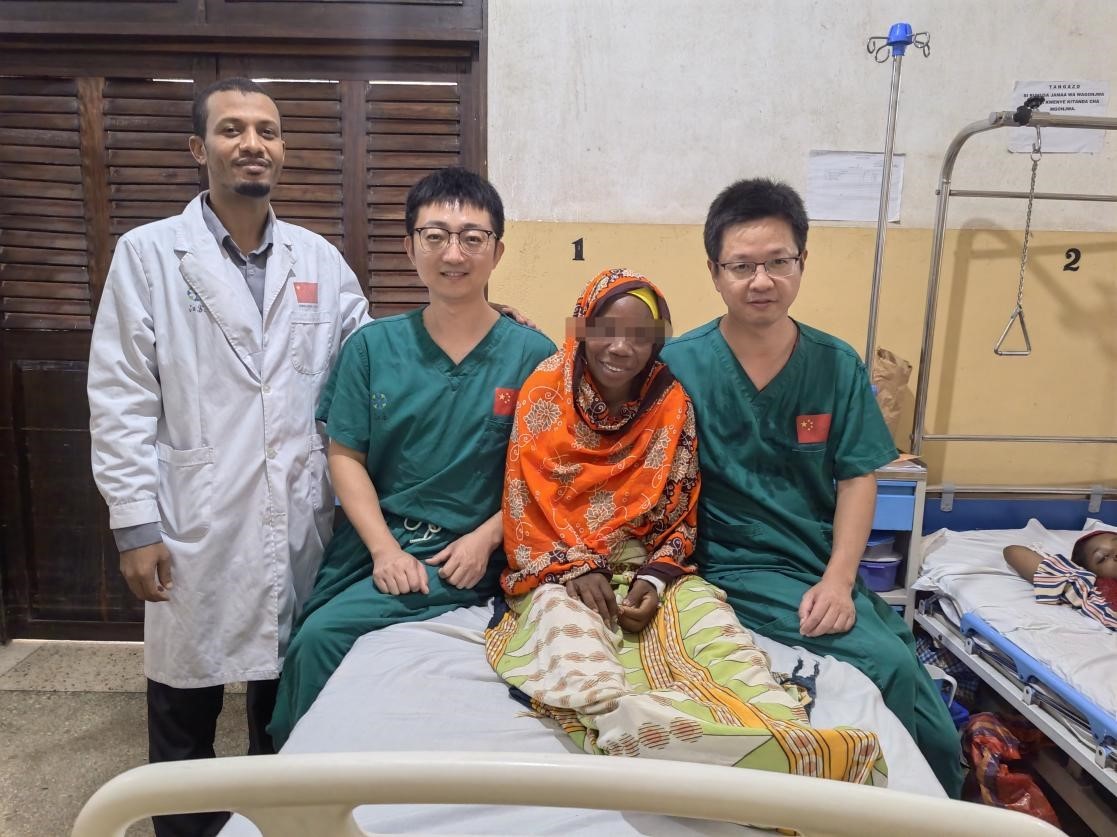 術(shù)后醫(yī)療隊(duì)外科小組成員與患者合影。中國(guó)(江蘇)第33期援桑給巴爾醫(yī)療隊(duì)供圖