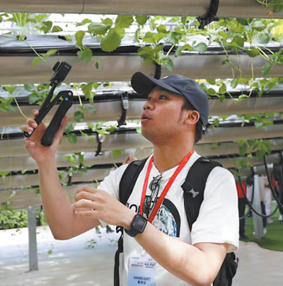 聞名在河南商丘市夏邑縣太平鎮(zhèn)參觀龍港灣空中草莓體驗館的智慧農(nóng)業(yè)設(shè)施并錄制視頻。受訪者供圖