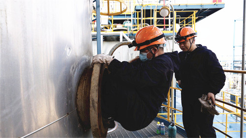 在蜿蜒曲長的管道間,在錯(cuò)綜復(fù)雜的設(shè)備旁,在罐體聳立的高處,在狹窄逼人的容器里,檢驗(yàn)人員正爭分奪秒、兢兢業(yè)業(yè)開展檢驗(yàn)工作。檢驗(yàn)人員嚴(yán)格依據(jù)相關(guān)法律法規(guī)、安全技術(shù)規(guī)范及相關(guān)標(biāo)準(zhǔn),從資料審查、設(shè)備本體及運(yùn)行狀況、安全附件、壁厚檢測等項(xiàng)目逐一進(jìn)行檢查,確保檢驗(yàn)工作不留死角。對于檢驗(yàn)中發(fā)現(xiàn)的問題,檢驗(yàn)人員及時(shí)向企業(yè)反饋,幫助企業(yè)整改,直至隱患消除。