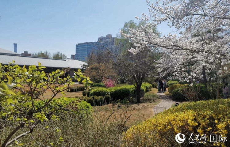 日本駐華大使館官邸庭院滿園春色。人民網(wǎng)記者 許文金攝