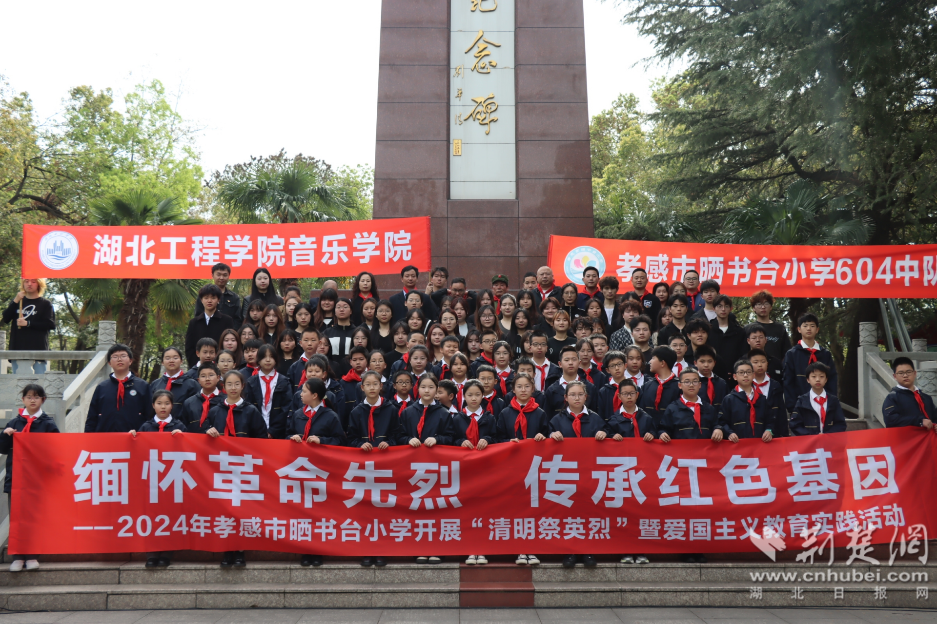 荊楚網(wǎng)(湖北日?qǐng)?bào)網(wǎng))訊(通訊員唐霄 黃洲 許曉悅)為了全力推進(jìn)傳承紅色基因與落實(shí)立德樹人深度融合,弘揚(yáng)民族精神和愛國(guó)主義精神,切實(shí)發(fā)揮“思政課程”和“課程思政”協(xié)同作用,著力構(gòu)建“大中小思政一體化”育人格局。4月1日,湖北工程學(xué)院音樂學(xué)院與孝感市曬書臺(tái)小學(xué)聯(lián)合開展“緬懷革命先烈,爭(zhēng)做時(shí)代先鋒”為主題的清明祭掃活動(dòng)。