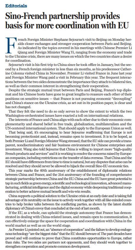 原文標(biāo)題:Sino-French partnership provides basis for more coordination with EU