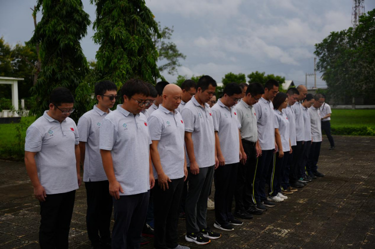 醫(yī)療隊(duì)隊(duì)員默哀。中國援桑醫(yī)療隊(duì)供圖