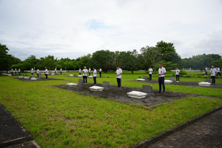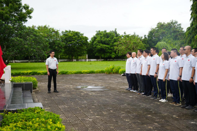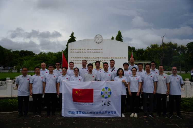 醫(yī)療隊(duì)全體隊(duì)員們懷著無盡思念的心情,來到公墓前敬獻(xiàn)花圈、宣讀入黨誓詞、默哀,在每個(gè)墓碑前駐足了解逝者事跡并敬獻(xiàn)鮮花,向烈士們致以崇高的敬意。