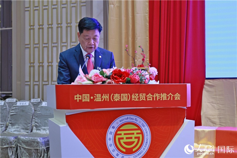 人民網曼谷4月6日電 (記者白元琪)由中國浙江省溫州市人民政府主辦,泰國中華總商會等機構協辦的經貿合作推介會4月6日下午在泰國曼谷舉行。泰國前副總理、泰中文化促進委員會主席披尼·扎祿頌巴,泰國中華總商會主席林楚欽,中國駐泰國大使館經商處參贊張瀟瀟等嘉賓出席會議并發(fā)表致辭。由溫州市市長張文杰率領的溫州市政府代表團、經貿代表團,泰國商界大型企業(yè)代表,泰國多個行業(yè)協會負責人,華商及僑團負責人等一百三十余人參加活動。