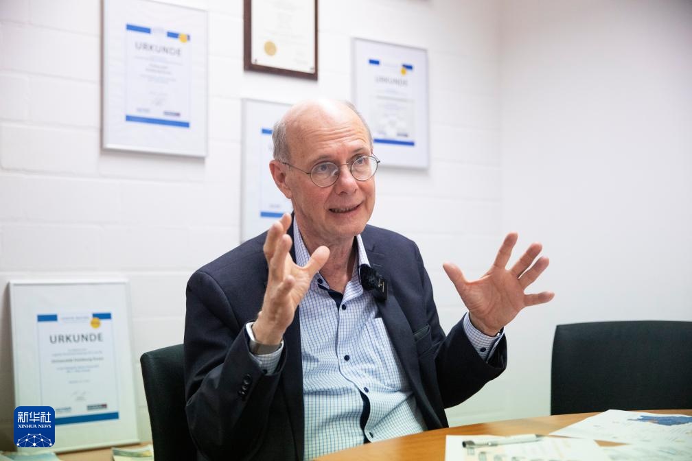 3月27日,德國(guó)杜伊斯堡-埃森大學(xué)交通與物流系主任貝恩德·諾合在杜伊斯堡接受新華社專訪。新華社記者 張帆 攝