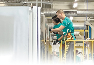 2023年9月,海信投資建設(shè)的塞爾維亞冰冷工廠竣工運(yùn)營。圖為工人在生產(chǎn)線上忙碌。