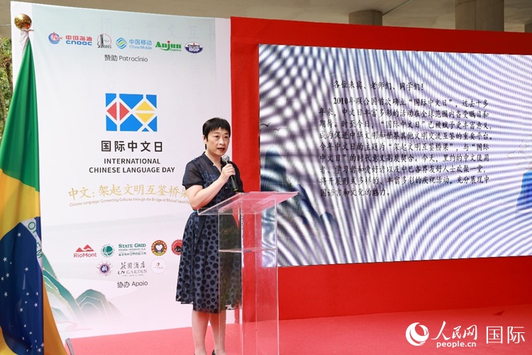 中國(guó)駐里約熱內(nèi)盧總領(lǐng)事田敏在活動(dòng)現(xiàn)場(chǎng)致辭。人民網(wǎng)記者 陳海琪攝