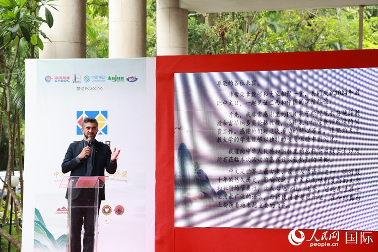 里約天主教大學(xué)校長(zhǎng)安德森·佩德羅索在活動(dòng)現(xiàn)場(chǎng)致辭。人民網(wǎng)記者 陳海琪攝