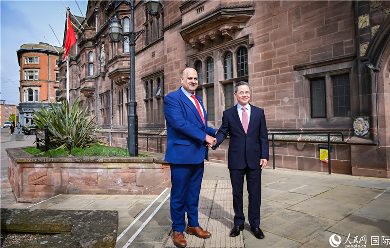 圖為中國駐英國大使鄭澤光在考文垂市政廳會見現(xiàn)場。人民網(wǎng) 郭錦標(biāo)攝