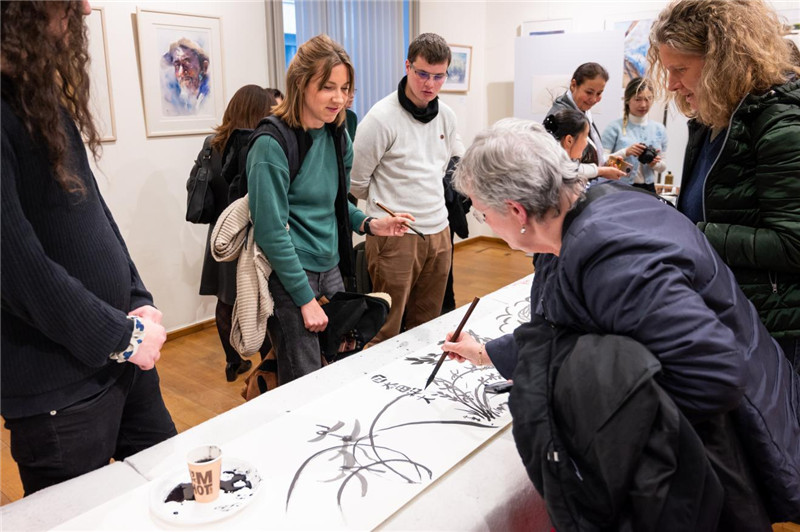 人民網(wǎng)布魯塞爾4月23日電 (記者牛瑞飛)正值“聯(lián)合國中文日”之際,“蘭亭·雅集”中國書法主題活動19日在布魯塞爾中國文化中心舉行。來自歐盟委員會教育文化總司等歐盟總部機構(gòu)的工作人員、布魯塞爾中國文化中心中文、書畫等培訓(xùn)班學(xué)員、比利時當(dāng)?shù)毓娂坝押萌耸?0余人參加。主題活動通過講座、互動體驗等形式,讓大家一同感受中國書法和中國文字的魅力,了解中國文化。