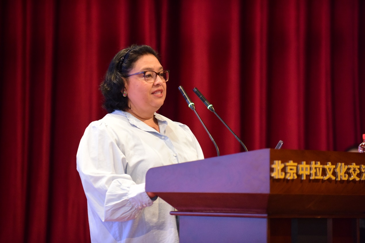 洪都拉斯外交部禮賓司副司長(zhǎng)泰莎·塞拉亞率洪都拉斯媒體官員和記者研修班蒞臨北京中拉文化交流中心參加活動(dòng)時(shí)致辭。主辦方供圖