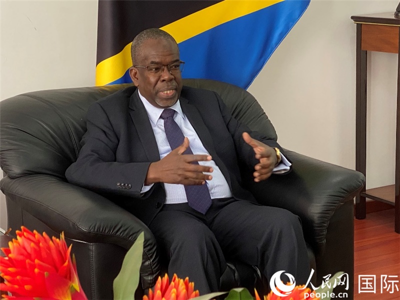 坦桑尼亞駐華大使哈米斯·奧馬爾正接受采訪。人民網(wǎng) 宋歌攝
