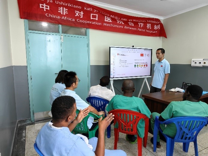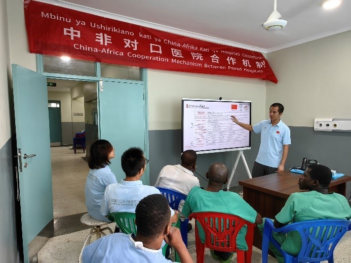 王林醫(yī)生開展術(shù)后疼痛管理的專題講座。中國(江蘇)第33期援桑給巴爾醫(yī)療隊(duì)供圖
