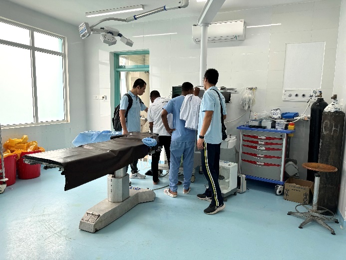 專題講座現(xiàn)場氣氛十分活躍,當(dāng)?shù)蒯t(yī)生們紛紛提問交流,王林作了詳細(xì)解答。會后,醫(yī)療隊(duì)前往麻醉科,對新建手術(shù)室中麻醉機(jī)的使用與維護(hù)進(jìn)行了討論。