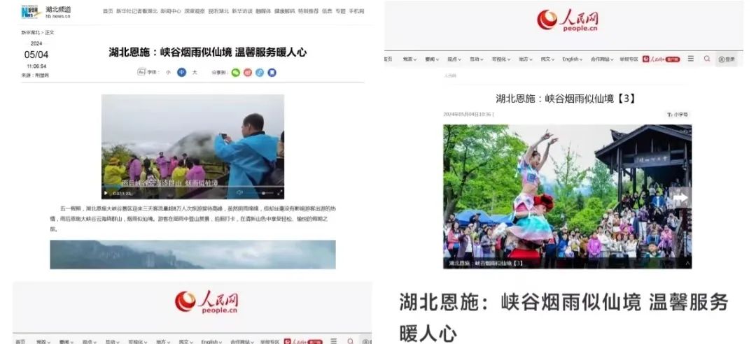 大峽谷景區(qū)受到央視新聞、新華網(wǎng)、人民網(wǎng)、長江云等主流媒體的熱點關(guān)注,聚焦報道《峽谷煙雨似仙境 溫馨服務(wù)暖人心》等暖人事件;抖音達人“一帶一”免費游景區(qū)活動備受好評,#知音湖北 遇見恩施大峽谷抖音話題挑戰(zhàn)賽游客熱情參與,抖音直播首次躋身全國景點排行榜前十。