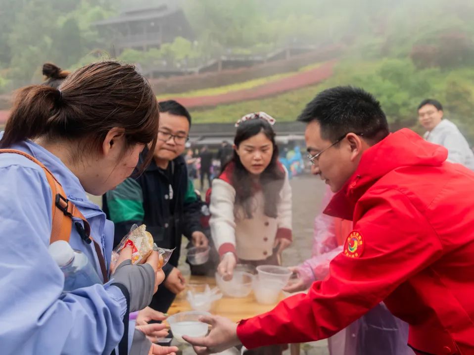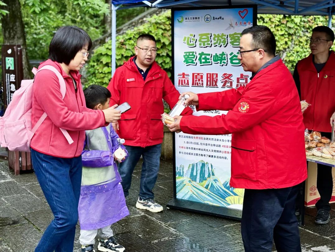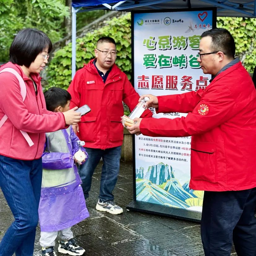 想您所想,盡我所能。大峽谷景區(qū)60多名志愿者以流動服務(wù)的方式將貼心服務(wù)送到游客身邊。分別在游客中心、小蠻腰垂梯出口、甘堰塘返程中心設(shè)立能量“補給站”,免費發(fā)放礦泉水、面包、雨衣。走累了,300臺按摩椅免費休息、放松;最特別之處放置吹風(fēng)機、暖風(fēng)機,時而的濛濛細雨讓淋雨的游客及時烘烤濕衣、吹干頭發(fā);在海拔相對高的區(qū)域,現(xiàn)場熬制熱氣騰騰的稀飯、沖泡特色玉露茶,在旅途中,既暖心又暖胃。