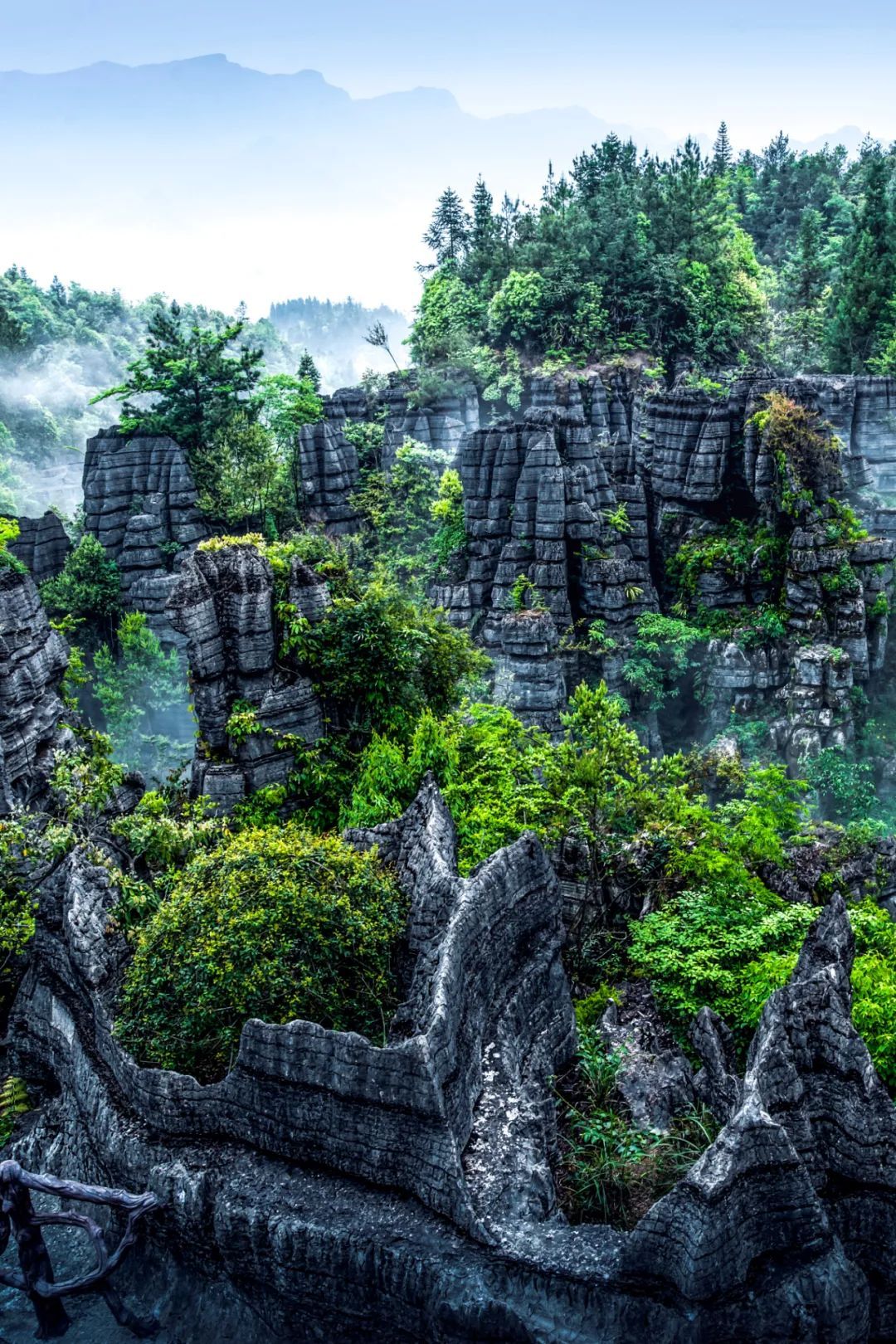 被稱為“天然奧陶紀地質博物館”的梭布埡石林。 攝影/文林恩施之所以這么“仙”,正是在于喀斯特地貌。這里的奇峰、絕壁、天坑、天生橋、天生柱數不勝數,萬米絕壁、千丈深淵、隱藏在深林里的瀑布群,構成了這座天然秘境的基本形態(tài)。