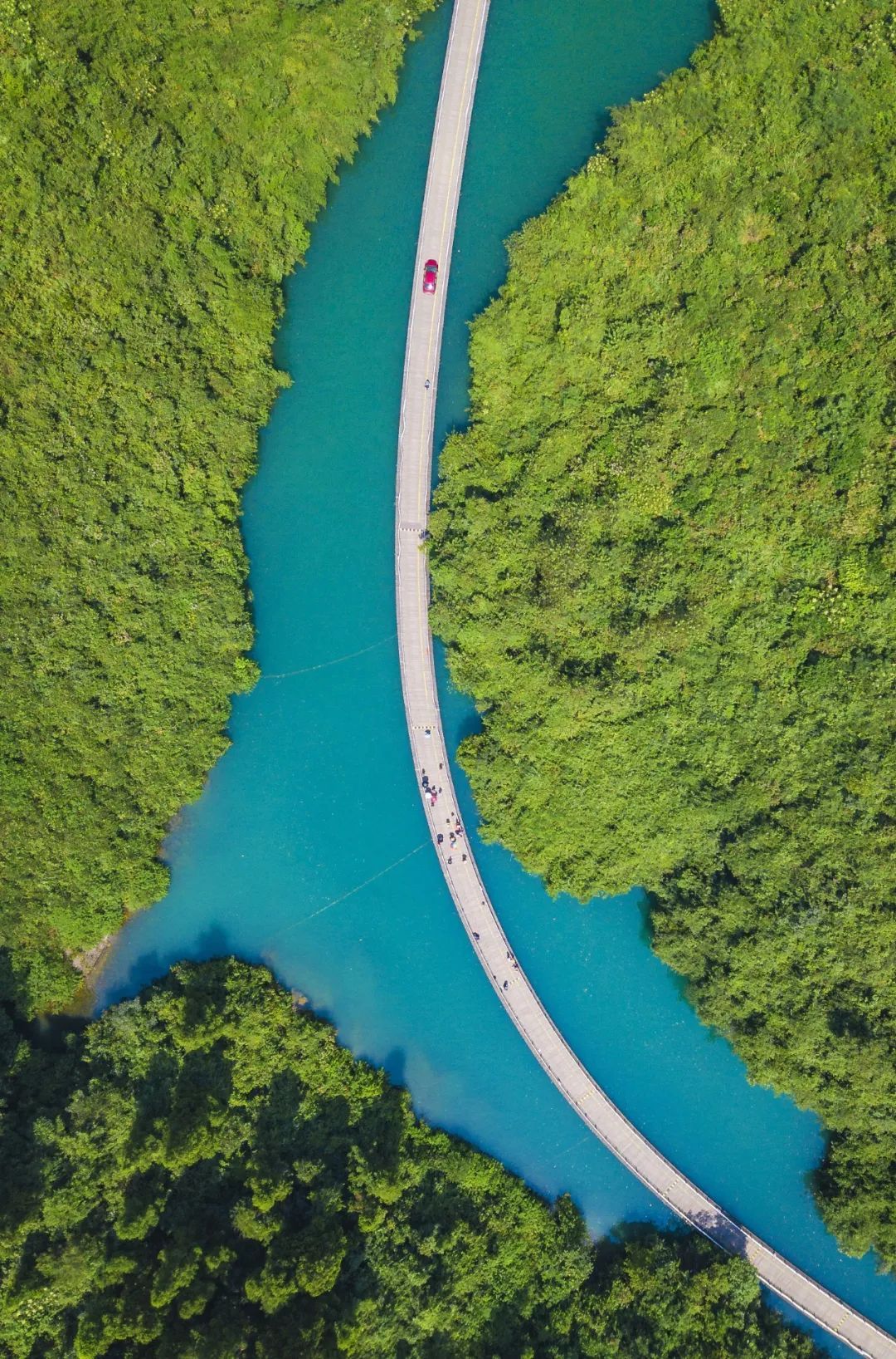 騰龍洞中起飛的熱氣球。 攝影/DoctorLuo,圖/圖蟲·創(chuàng)意獅子關最美水上公路,讓恩施州成了網紅打卡圣地。這段被稱為“廊橋遺夢”的水上浮橋,仿佛一條蜿蜒的玉帶垂于平靜的水面。走在這條路上,讓人仿佛置身于世外桃源,一股“緣溪行,忘路之遠近”的感覺油然而生。