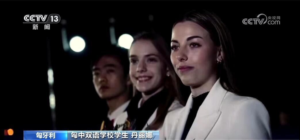 匈中雙語學(xué)校學(xué)生丹麗娜說:“我很開心可以見到他們。我說,您好,我是匈中雙語學(xué)校的丹麗娜,歡迎來到匈牙利。這個(gè)領(lǐng)帶上可以看到匈牙利國旗和中國國旗,它們一起就是一個(gè)中字,這領(lǐng)帶代表兩個(gè)國家的友誼。我學(xué)了10年漢語,將來這個(gè)語言會(huì)給我打開很多工作的新門。”