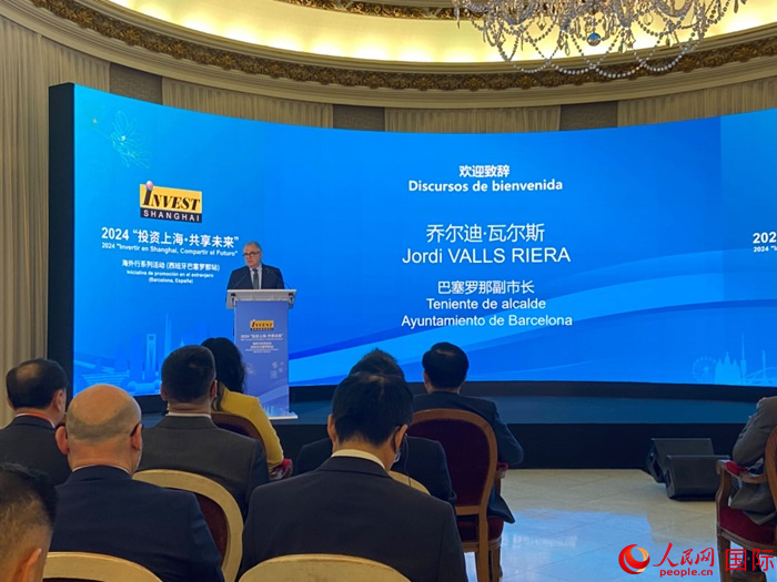 | 巴塞羅那副市長(zhǎng)瓦爾斯在投資上海推介會(huì)上致辭。人民網(wǎng)記者 范劍青攝 |