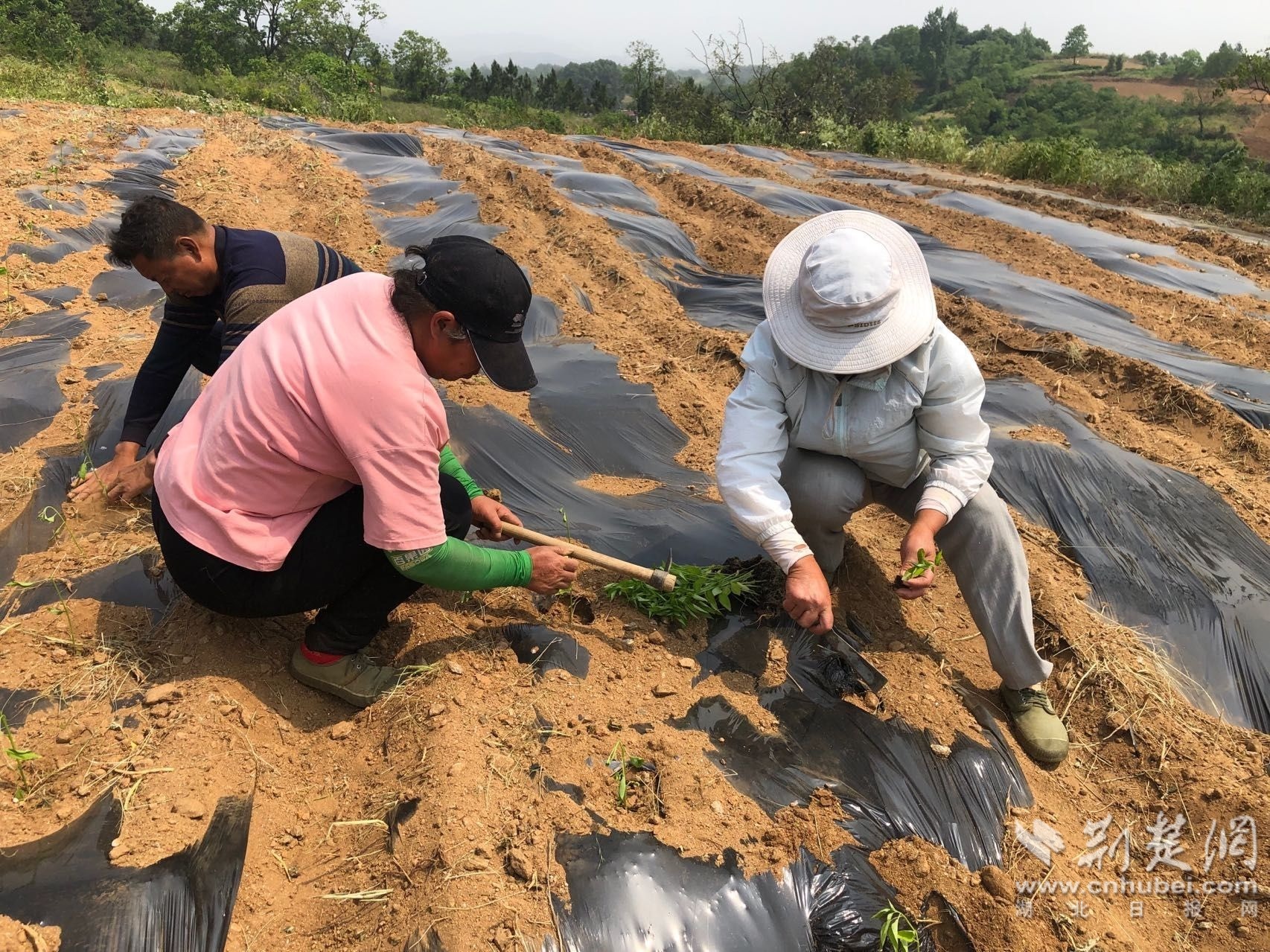 “栽種前要先打好壟,覆蓋好塑料薄膜,辣椒苗不能栽種太深、壓得太緊,子葉一定要留在外面,移栽好后要用細(xì)土封口,這樣才利于辣椒的生長……”正在現(xiàn)場指導(dǎo)辣椒移栽的北河村黨支部書記黃嬌一邊講解一邊示范操作。