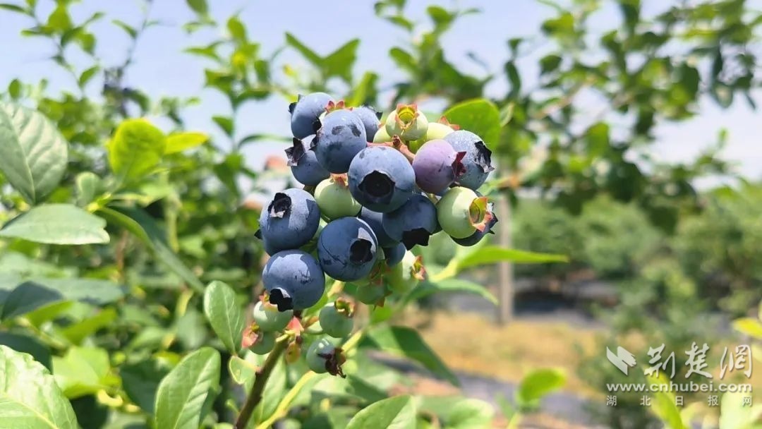 5月17日上午,在孝昌縣衛(wèi)店鎮(zhèn)佳地藍(lán)莓家庭農(nóng)場(chǎng),只見半人高的藍(lán)莓樹排列整齊,飽滿多汁的藍(lán)莓果掛滿枝頭,成熟的紫色果實(shí)在陽光的照耀下格外搶眼。