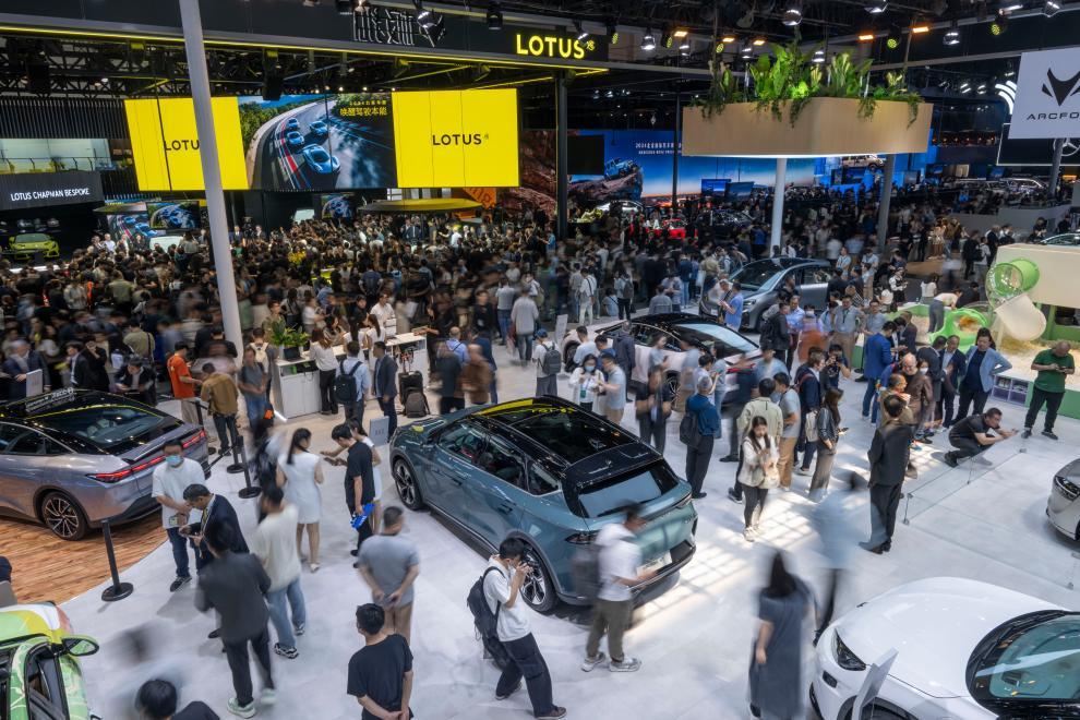 4月25日,人們在2024(第十八屆)北京國際汽車展覽會現場參觀。新華社記者才揚攝