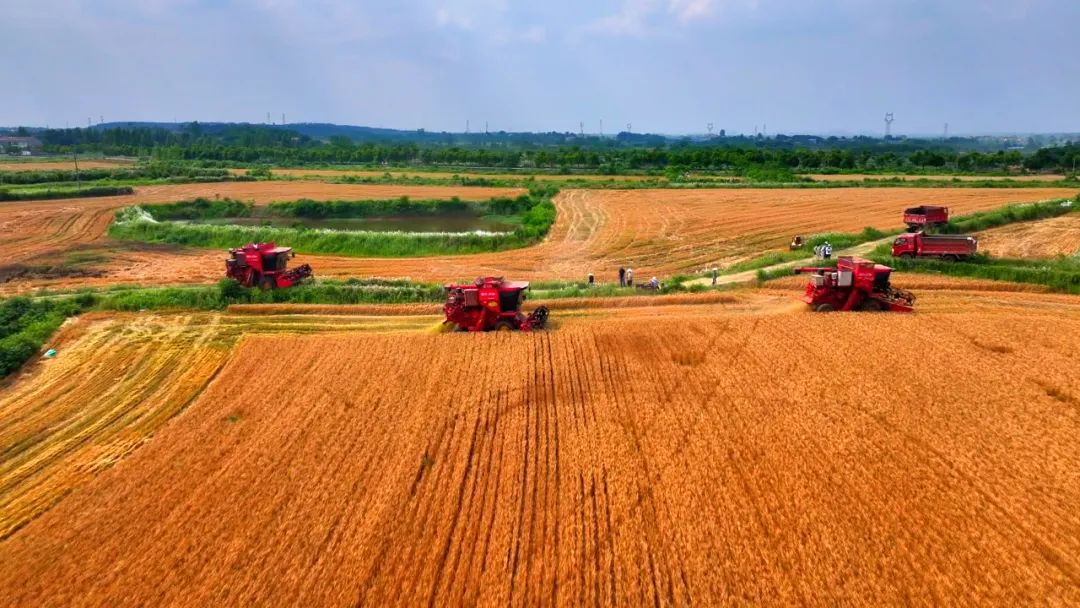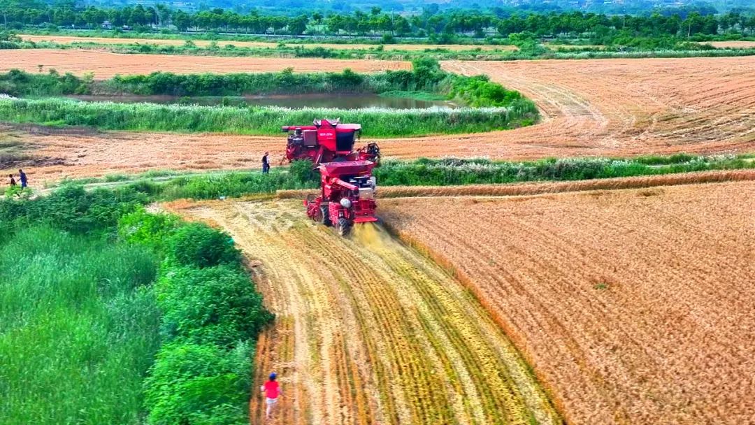 在鄒崗鎮(zhèn)周興村的麥田里,大型收割機轟鳴前行,一簇簇小麥被吃進(jìn)“肚子”,收割、脫粒、除雜一氣呵成,金黃的麥粒隨著收割機的管道傾瀉而出。
