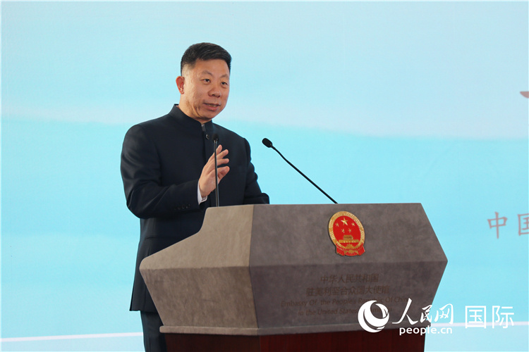 中國駐美國使館井泉公使在致辭中表示歡迎大家來使館一起品茗賞藝、交流對話。人民網(wǎng)記者 李志偉攝