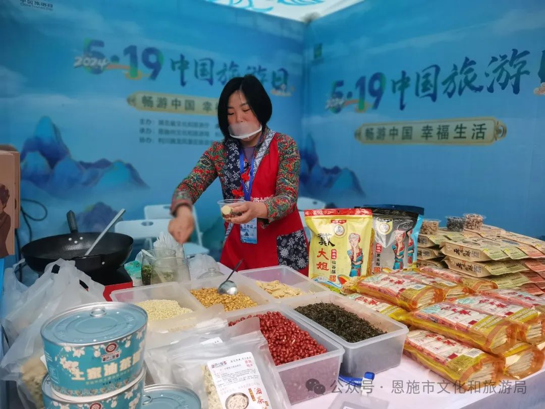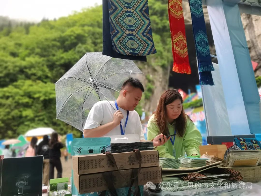 為充分展示恩施市豐富多樣的文化旅游資源,提升恩施旅游品牌形象,凝聚行業(yè)力量,恩施市組織了包括恩施大峽谷、梭布埡石林、鹿院坪、土司城、龍麟宮、布衣織秀、芭土康、覓福文創(chuàng)、京豐農(nóng)業(yè)在內(nèi)的10余家文旅企業(yè)在旅游集市上展示和銷售30余種特色文創(chuàng)產(chǎn)品及農(nóng)產(chǎn)品。精美的西蘭卡普織錦、富有地域特色的文創(chuàng)產(chǎn)品、香氣四溢的油茶湯、恩施玉露、恩施小土豆等,吸引了眾多游客駐足購買。